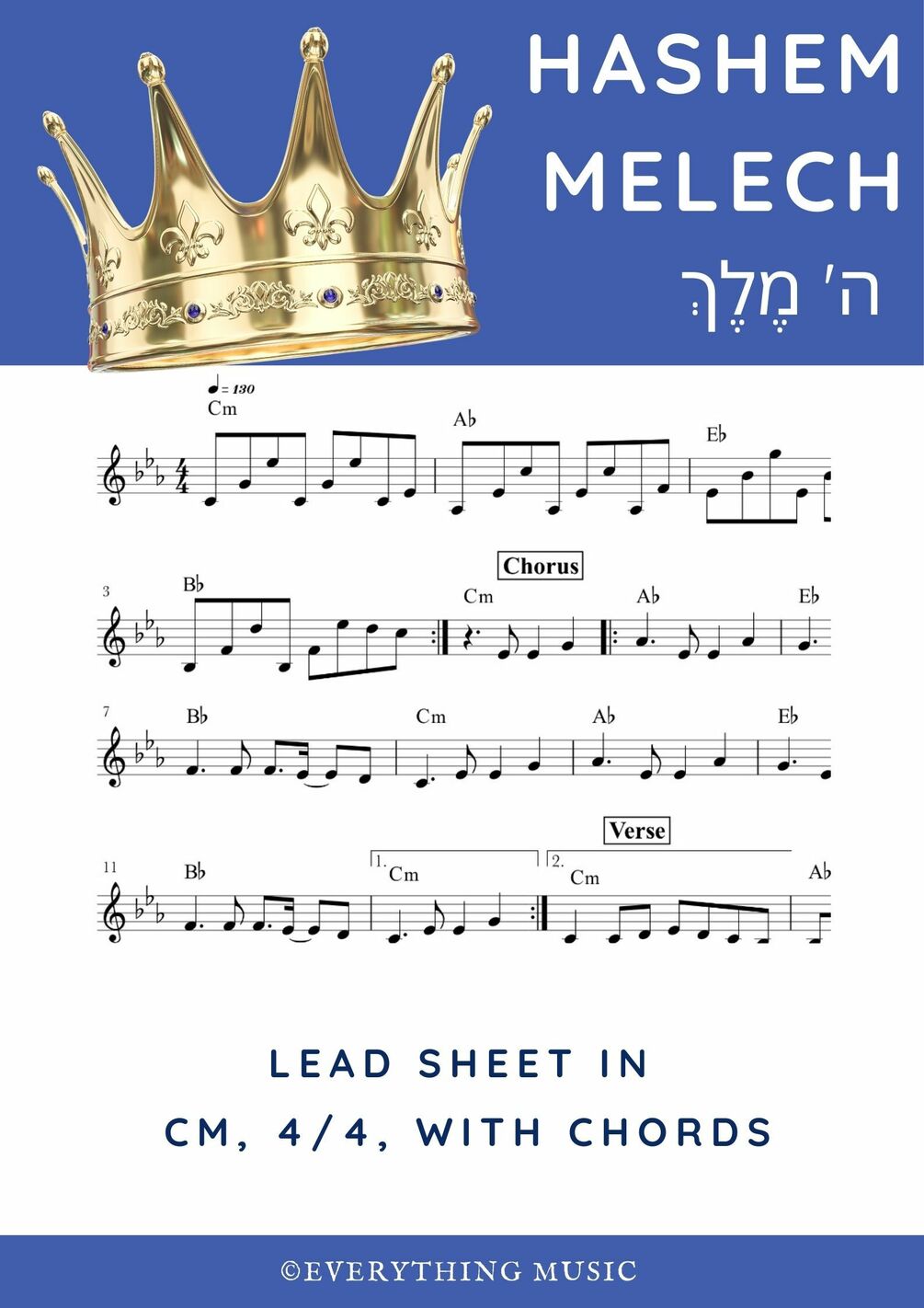 Easy piano tutorial of the song Hashem Melech (ה' מלך ) from Israeli singer Gad Elbaz גד אלבז in Cm, 4/4 with chords